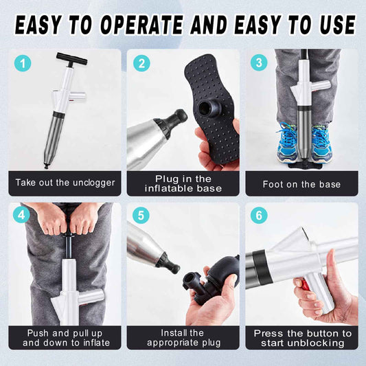 Toilet Plunger, High Pressure Air Plunger Drain Blaster with Visual Pressure Gauge, Drain Clog Removal Tool, Stainless Steel Toilet Unclogger Plungers for Bathrooms, Sinks, Kitchens, Clogged Pipe