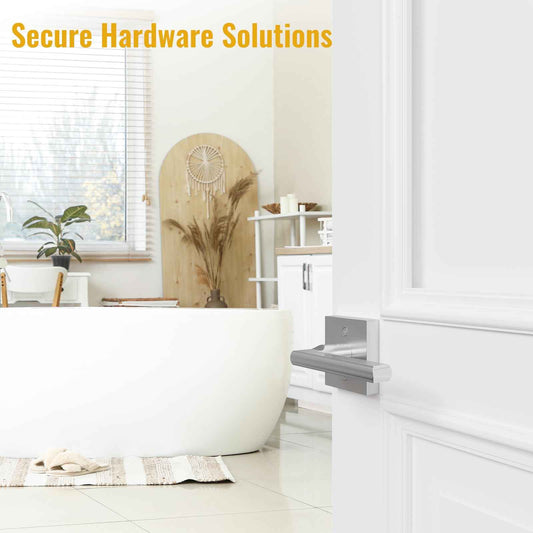 HOSOM Privacy Door Handles for Bedroom and Bathroom, Door Handle Interior Door Levers Keyless Reversible Square Door Locks, Satin Nickel, 1 Pack