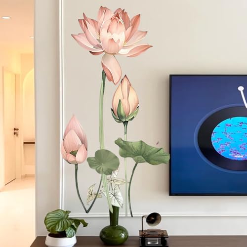 DIY Watercolor Lotus Bunch Big Wall Stickers,Vinyl Wall Art Peal and Stick for Bathroom Restroom Bedroom Living Room,Home Entrance Backdrop Decorations(Lotus, 24''x47'')