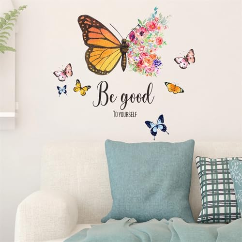 Gorgeous Butterfly and Colorful Flowers Wall Stickers, sacinora Yellow Pink Blue Butterflies Inspirational Quotes Wall Decals Removable Vinyl Peel and Stick for Living Room Bedroom Nursery Art Decor