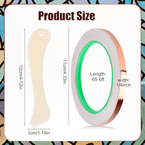 2pcs Copper Foil Tape Kit for Stained Glass, 1/4"x65.6 Feet Double-Sided Adhesive Conductive Tape with Plastic Scraper Supplies for EMI Shielding Electrical Repair Guitar Muffling