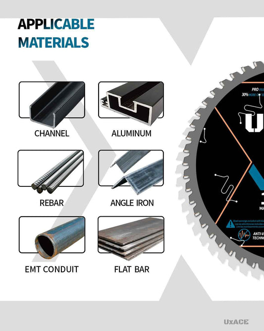 UXACE 6-1/2-Inch 48-Tooth Circular Saw Blade, 5/8-Inch Arbor, Ferrous Metal, Steel Cutting Blade, Carbide Tip, Thin Kerf, for Channel, EMT Conduit, Angle Iron, Threaded Rod, Flat Bar