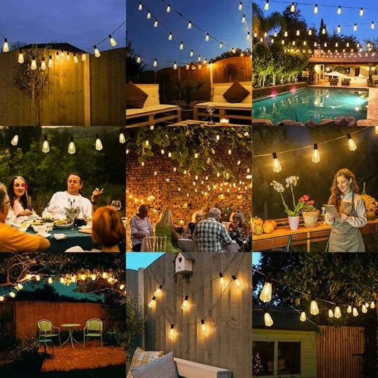 RYKUG 50FT LED Outdoor String Lights with 27 ST38 Bulbs (2 Spare) Connectable Yard Hanging Lights for Party Tents Patio Gazebo Porch Deck Bistro Backyard Balcony Pergola Outside Decor