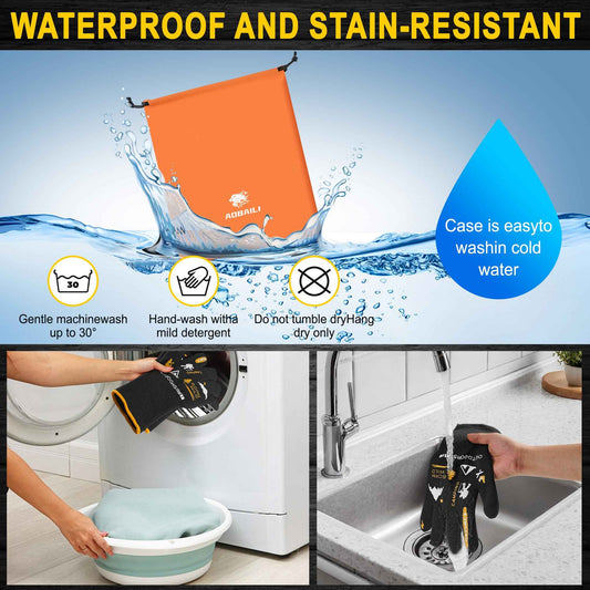 AOBAILI BBQ Gloves, Grilling Gloves Heat Resistant Oven Gloves, Kitchen Silicone Oven Mitts, Long Waterproof Non-Slip Pot Holder for Barbecue, Cooking, Baking, Black (Black)