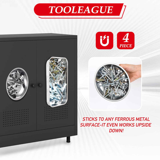 TOOLEAGUE 4Pcs Magnetic Tray Set with 15Lb Magnetic Pickup Pen,Stainless Steel Trays with Extra Strong Magnets for Organizing and Retrieving Metal Parts