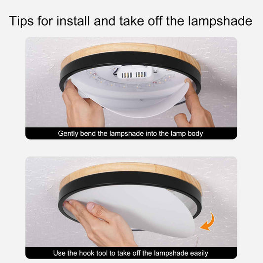 ZUYURT Wood LED Ceiling Light, Modern Black Flush Mount Ceiling Light, Minimalist Close to Ceiling Light Fixture for Bedroom, Hallway, Kitchen, Laundry Room, 11.81in