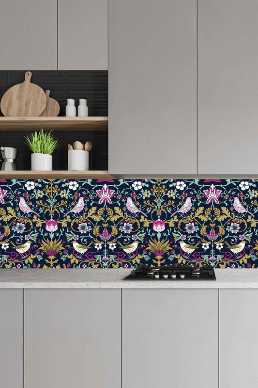 BaoHArtHome Vintage William Morris Peel and Stick Wallpaper Abstract Contact Paper for Bathroom Home Wall Deor Wallpaper 17.7in x 9.8ft