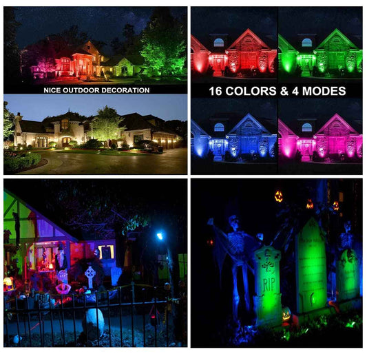 Junview Halloween Spotlight Outdoor 120V LED Spot Lights Outdoor RGB 12W Color Changing Landscape Lights Flag Pole Light with Remote Control Waterproof for Yard Pathway Garden Decorative (1Pack)