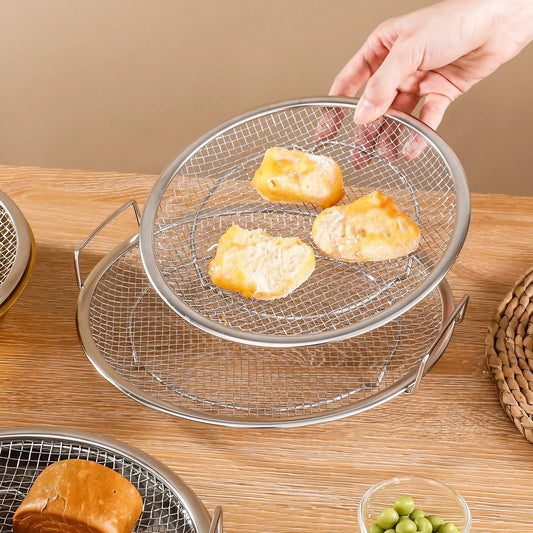JANKOW Air Fryer Rack Round Stainless Steel Basket, Oil Strainer Basket, Round Stackable Grill, Deep Fryer Basket for Air Fryer Accessories in the Kitchen (Gold) (Silver)