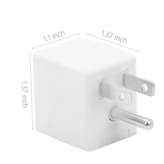USA 3-Prong Male-Female Adapter,90 Degree Angled USA Male Female Power Adapter, 5-15P to 5-15R Direction Changer Space Save Adapter White