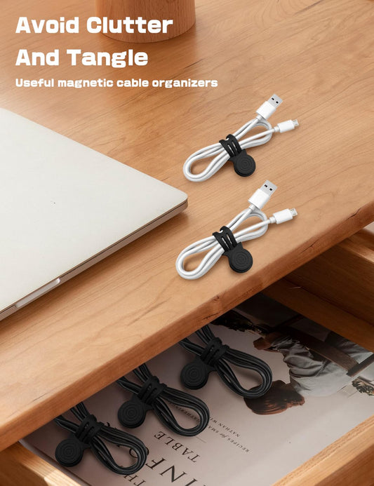 Maveek 10 Pcs Cable Ties Magnetic Cord Organizer Storage Travel For Laptop Computer Earphones USB Phone Charging Wires, Small Cord Wraps Keeper Clips - Black