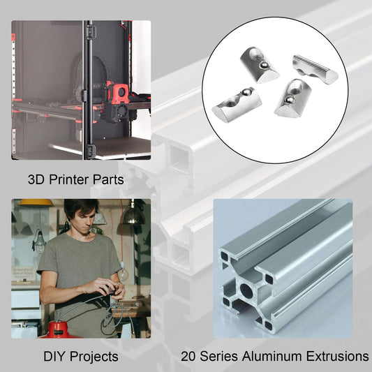 M3 Roll in Spring Loaded T Nut 100pcs M3x0.5mm T-Nuts Carbon Steel Nickel Plated for 20x20 20 Series Aluminum Extrusions 3D Printer Replacement Tiny Nuts