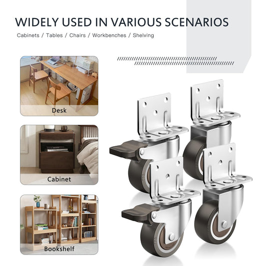 ANDUTEES Side Mount Casters, 1.5 Inch Furniture Wheels, L-Shaped Rubber Casters Set of 4, 360-Degree Locking Swivel Top Plate Small Castor Wheels for Furniture, Baby Bed, Kitchen, Cabinet, Table.