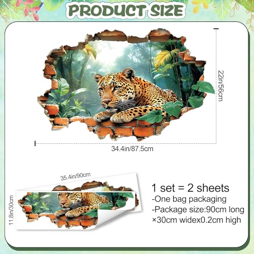 3D Broken Tiger Wall Decal Break Through Jungle Animals Wall Sticker Removable Tropical Rainforest Wall Art Forest Plants Peel and Stick Wallpaper for Kids Boys Bedroom Nursery Home Decoration B16018
