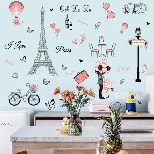 Wall Sticker Removable Romantic Paris Eiffel Tower Sticker Pink Colorful Wall Decal Vinyl Wall Art for Girl Riding Art Decal Home Decor