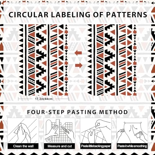 wishFIRE Black and Brown Geometric Boho Peel and Stick Wallpaper 17.3"¡¿120" Tribal Style Contact Paper Removable Waterproof Self-Adhesive Vinyl Film Wallpaper for Bedroom Kitchen