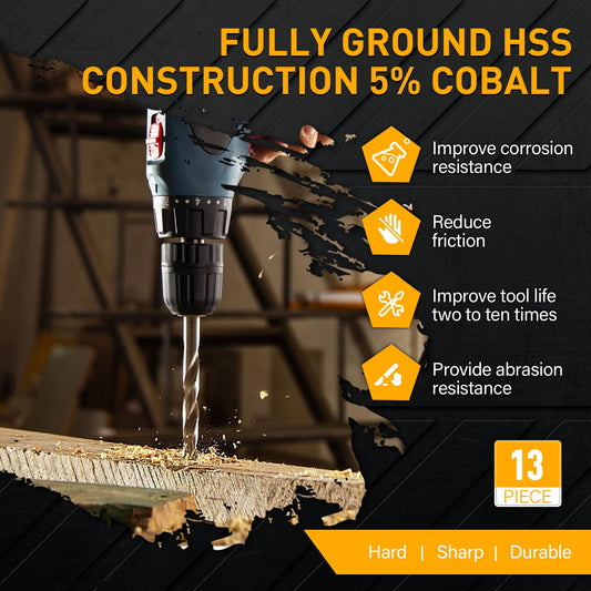 ROGAPER 13Pcs Cobalt Drill Bit Set, M35 HSS Jobber Length Drill Bit for Hardened Metal, Cast Iron, Stainless Steel, Plastic, and Wood, 1/16" - 1/4"Regular price $25.95 USDRegular priceUnit price / per$51.99 USDSale price $25.95 USDSale