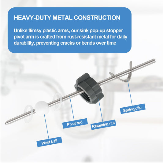 Lavatory Pop Up Center Piece Assembly-Metal Pivot Arm, Compatible with Price Pfister PS469, PSB327 & PS2673, Includes Waterproof Tape for Easy Installation – Durable Sink Stopper Replacement(2 PACK)