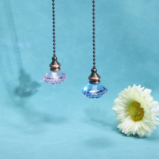 PATIKIL Ceiling Fan Pull Chain, 2 Pack 12" Decorative Diamond Pendant Chain Extender Charm Extension Pull String for Ceiling Fans Light Lamp, Purple