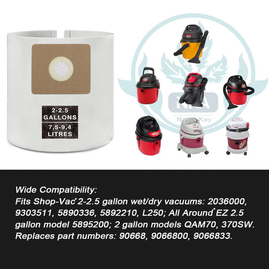 6 Pack 90668 Vacuum Bags for Shop-Vac 2-2.5 Gallon - Type B Filter Bags Fits Models 2036000, 9303511, QAM70, L250 - Replaces 9066800, 9066833