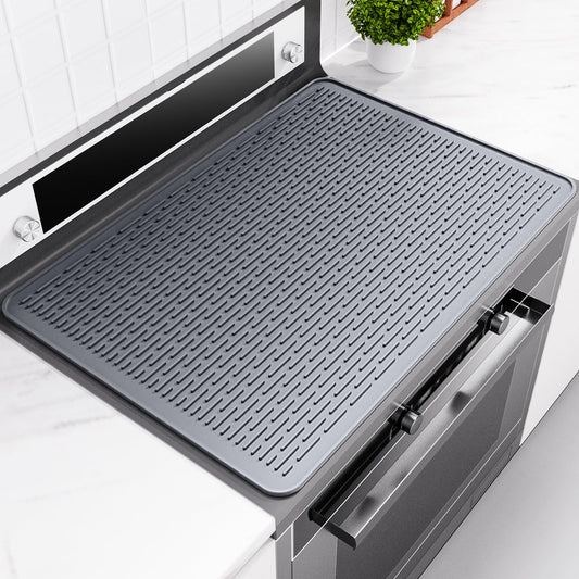 IKANFI Stove Top Cover for Electric Stove, Dish Drying Mat for Kitchen, Glass Cooktop Protector, Heat Resistant Waterproof Foldable Anti-Slip Silicone Mat (Gray, 30''L x 21''W)