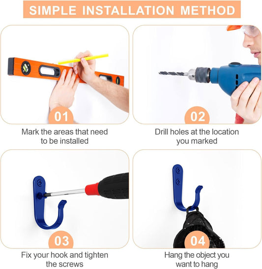 20PCS Wall Hooks for hanging, Metal Wall Hooks for Coats, Coat hooks for Wall, Heavy Duty Single Prong Wall Hooks With 40 Pieces Screws for Hanging Coats,Towel,Backpack,Hat, Dog Leashes (Blue)