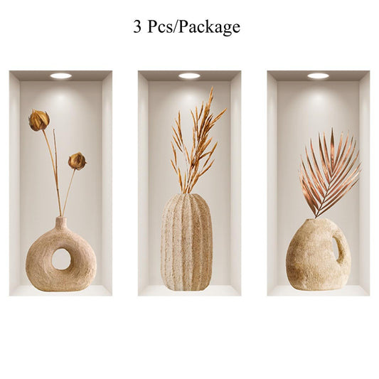 LOONELO 3D Dried Flower Vase Wall Stickers, 3Pcs Rustic Blossom PVC Wall Decals, Removable 3D Floral Wall Art for Living Room, Bedroom, Entryway, Sofa Backdrop, Yoga Studio, Office, Home Decor