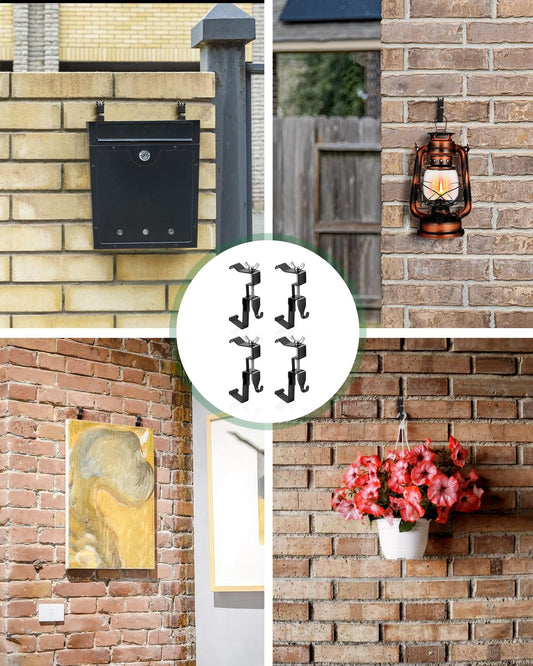 Stalishare Brick Clips, Brick Hangers Hooks for Hanging Outdoors No Drill, 1.97-2.91 inches Adjustable Brick Wall Clips, Metal Brick Picture Hangers No Damage (Pack of 4, Black)