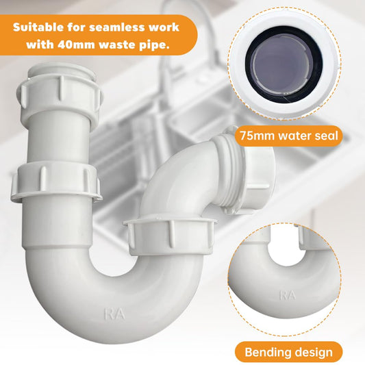 DIA 40MM Sink Drain Pipe Swivel P Trap with 75mm Water Seal for Bathroom & Kitchen - Easy Install Kitchen Sink Plumbing Kit