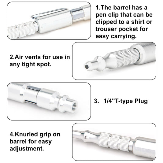 Kodilin 5Pcs 1/4"I/M Type Plug Air Blow Gun,Adjustable Pocket Blow Gun
