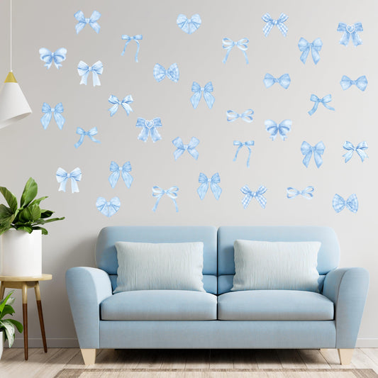 A1diee Blue Bow Wall Stickers - 60Pcs Trendy Light Blue Watercolor Coquette Aesthetic Wall Stickers Bow Knot Baby Room Decor Vinyl Decals Art Wallpaper for Boys Girls Bedroom Kindergarten Nursery