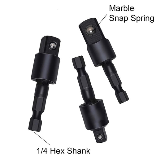 17-Pieces Flexible Drill Bit Extension Set with 3 rotatable socket adapters, 2 hex shank 105° right angle drill attachments, 10 short screwdriver bits, and a 90° angled bit with a flexible extension