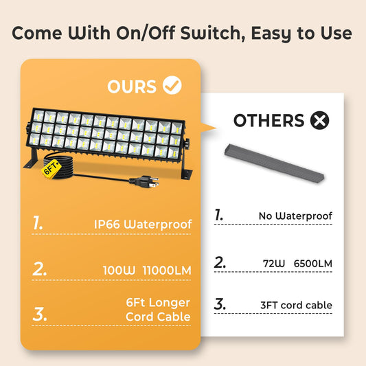 YQNLIFA 100W LED Shop Lights, 11000LM 6000K Plug in Garage Light with 6FT Power Cord, IP66 Waterproof Work Light for Garage, Outdoor, Workshop, Yard, Warehouses, Carport, Indoor