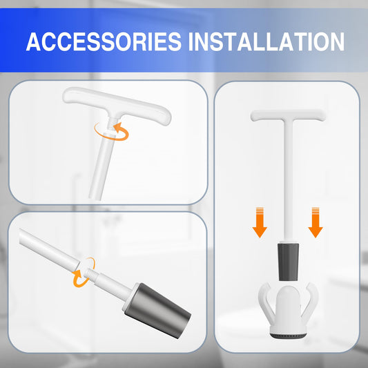 Cinola Upgraded Toilet Plunger with Holder, Wall Mounted Toilet Bowl Plunger with Hideaway Caddy, Dual Handle Plunger for Bathroom Built-in Drip Tray, White