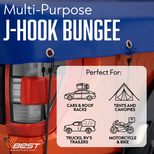 VBEST 24 Inch Bungee Cords with Hooks - 12 Piece Black Bungee Cords Heavy Duty Outdoor 2 ft