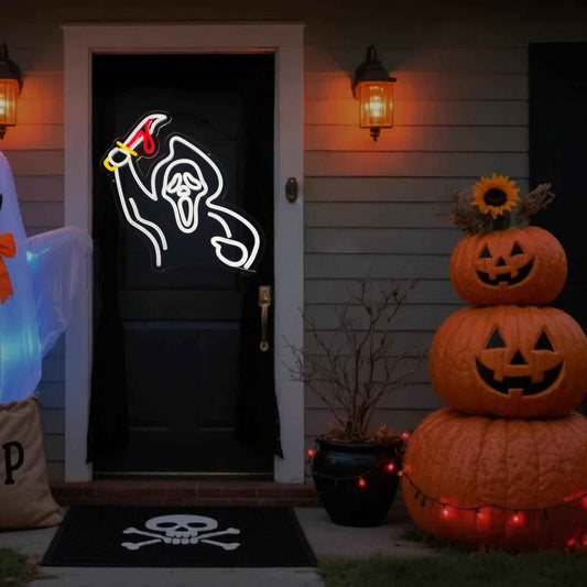 Halloween Ghost Face Neon Sign Decoration,Ghost With Knife Lights for Wall Decor Hanging Ghost LED Signs for Bar Bedroom Game Room Man Cave Neon Art Signs for Halloween Party