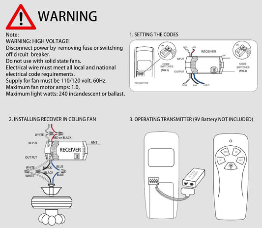 Universal Ceiling Fan Remote Control Kits with Light Dimmer 3 Speed Fan Controller Replacement for Hampton Bay Hunter Harbor Breeze Westinghouse Honeywell & More FAN-35T KUJCE9603 L3HFAN35T1