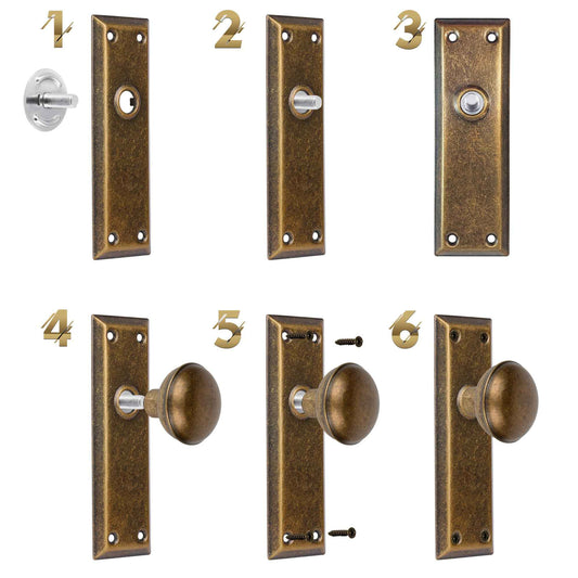 ToPToToo Dummy Door Knob Interior, Inactive Door Knobs for Closet, Antique Bifold Door Knobs Replacement, Single-Side Dummy Old Style Door Handle, Vintage Brass, 2 Pack