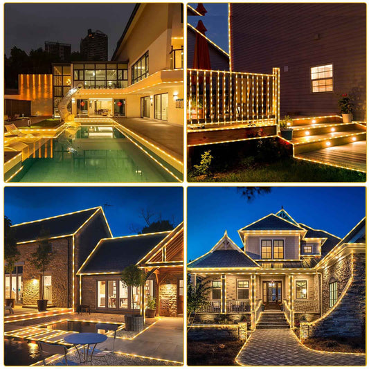 200 LED Solar Rope Lights Outdoor, 66FT Solar String Lights Indoor Waterproof Solar Powered Trampoline Light Clear Tube Pool Light for Camping Fence Yard Walkway Path Garden Outside Decor(Warm White)
