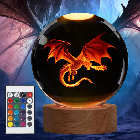 POSSHE Dragon Night Light, 3.15 Inch (80mm) K9 Crystal 3D Lamp with Remote 16 Color for Birthday Xmas Cool Figurines Dragon Gifts for Room Decor Boys Girls