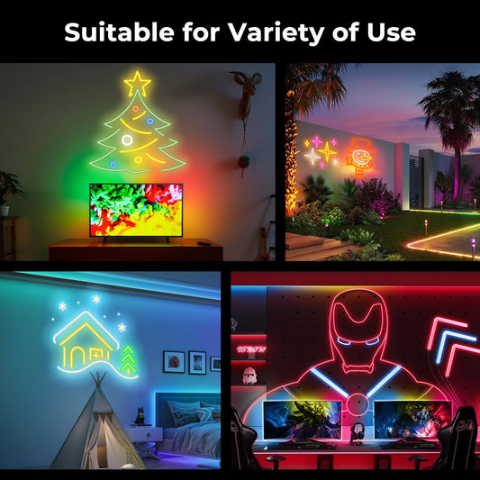 ANDOHAI 50FT LED Neon Rope Lights, Flexible Led Rope Lights Control with App/Remote, IP67 Outdoor RGB Color Changing Led Neon Lights Waterproof, Music Sync Led Strip Lights for Bedroom Decor