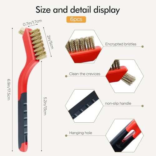 Wire Brush Set for Cleaning Rust, 7 Inch Stainless Steel/ Brass/ Nylon Brush for Cleaning Welding Slag, Paint and Dirt Removal (3 Pcs Red + 3 Pcs Blue, 7 Inch)