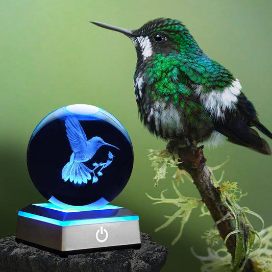 PYMIN3D 3.15 inch Hummingbird Crystal Ball Night Light with Colorful LED Lamp Touch Base Hummingbird Figurine Decor Gifts for Women Friends Birthday Christmas