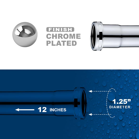 ZM 1-1/4 Inch Heavy Duty Extension Tube with Slip Joint Connection, 12 Inch Length, 22 Gauge, Brass Plumbing Fitting, ChromeRegular price $25.95 USDRegular priceUnit price / per$51.99 USDSale price $25.95 USDSale