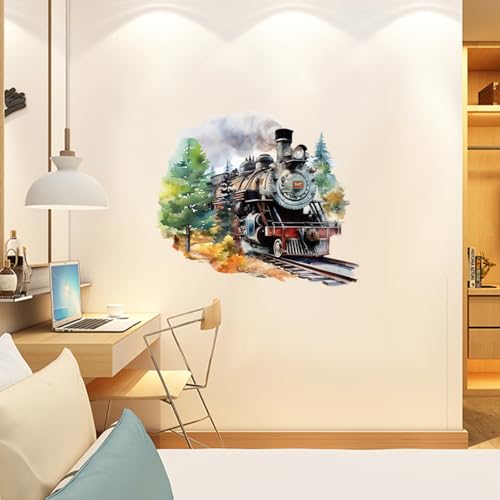 PLIGREAT Multicolor Cartoon Retro Train Wall Stickers, Peel & Stick Vinyl Decals for Kids Room, Nursery, Bedroom, Living Room, Home Office, DIY Wall Art Decor