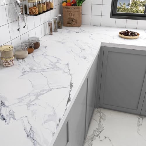 LACHEERY Silver Grey White Marble Contact Paper Matte Countertop Vinyl Wrap Waterproof White Marble Countertop Covers Peel and Stick Wallpaper for Kitchen Countertops Cabinets Wall Paper Roll 15.8x79