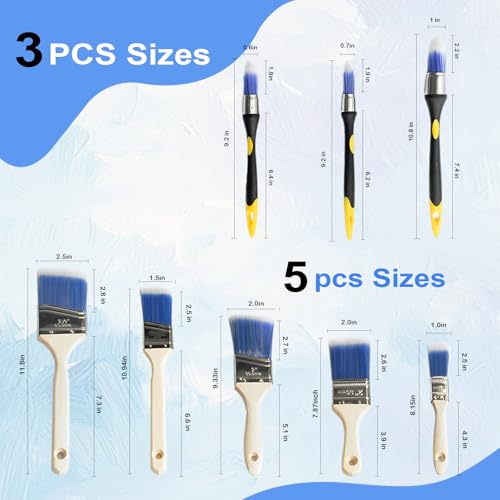 Professional 8-Piece Wall Painting Brush Set - Angled/Flat Trim Brushes (1"-2.5") with Durable Bristles for Walls, Doors, Cabinets, DIY Projects | Smooth Finish & Corner Access