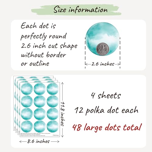 Pastel Polka Dots Wall Stickers 48 pcs, Easy Peel & Stick Decals, Premium Removable and repositionable Fabric Stickers, Watercolor Style Circle Decor for Nurseries, Kids bedrooms, classrooms (Aqua)