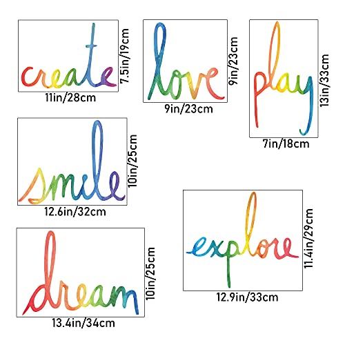 RW-6006+7 Colorful Inspirational Wall Decals Love Dream Smile Wall Stickers Play Create Explore Vinyl Quote Decals DIY Removable Saying Words Wall Art Decor for Kids Bedroom Classroom Nursery Playroom