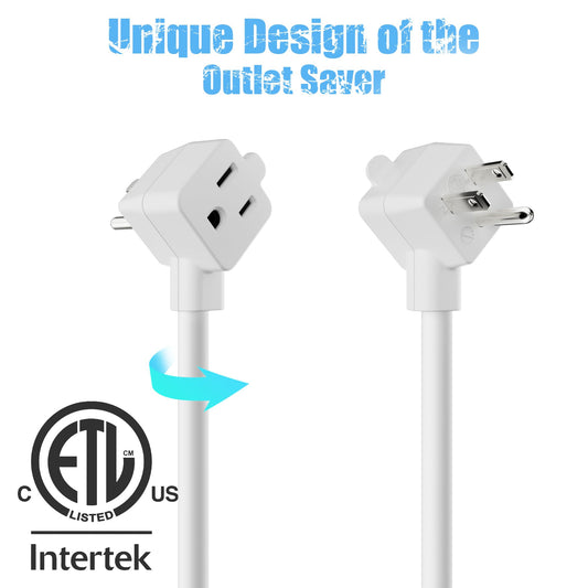 2-Outlet Extension Cord 4 FT, Pigtail 3 Prong Extension Power Cable, 45 Degree Plug Design, 16/3 Gauge Cold with Extra Socket on Plug, 13A 1625W 16AWG, Outlet Saver, Power Splitter, ETL Listed, White